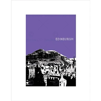Wee Blue Coo Cityscape Edinburgh B&W Scotland Purple Arthurs Seat Wall Art Print