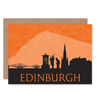 Wee Blue Coo CITYSCAPE EDINBURGH SCOTLAND ORANGE ART GREETINGS GREETING CARD GIFT