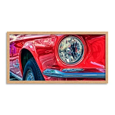 Wee Blue Coo Classic Car Automobile Headlight Red Long Panel Framed Wall Art Print