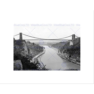 Wee Blue Coo CLIFTON SUSPENSION BRIDGE 1900 VINTAGE OLD BW FRAMED ART PRINT MOUNT B12X2445