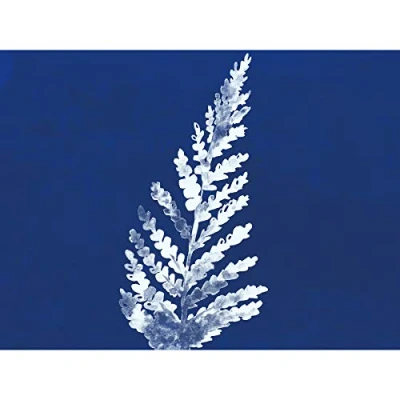 Wee Blue Coo Cobalt Botanics Fern Frond Watercolour Premium Wall Art Canvas Print 18X24 Inch