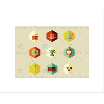 Wee Blue Coo Coffee Cafe Design Beans Grinder Cup Picture Wall Art Print