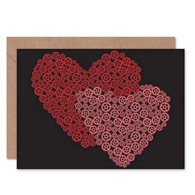 Wee Blue Coo COGS GEARS HEARTS LOVE VALENTINES DAY ROMANCE BLANK BIRTHDAY CARD