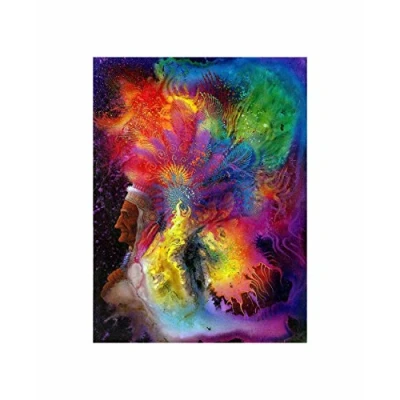 Wee Blue Coo Colorful Indian Headdress Shaman Photo Art Picture Canvas Print