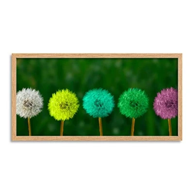 Wee Blue Coo Colourful Dandelion Flower Heads Long Panel Framed Wall Art Print