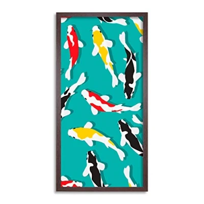 Wee Blue Coo Colourful Koi Carp Fish Graphic Long Panel Framed Wall Art Print
