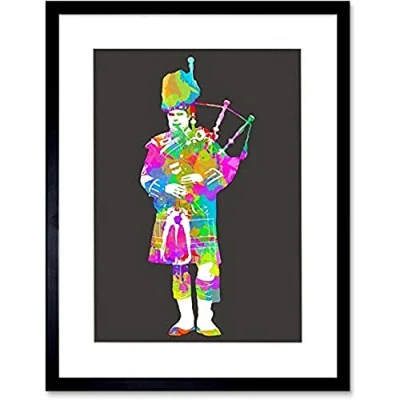 Wee Blue Coo Colourful Piper Bagpipes Scotland Unframed Art Print Poster Wall Decor 12X16 Inch