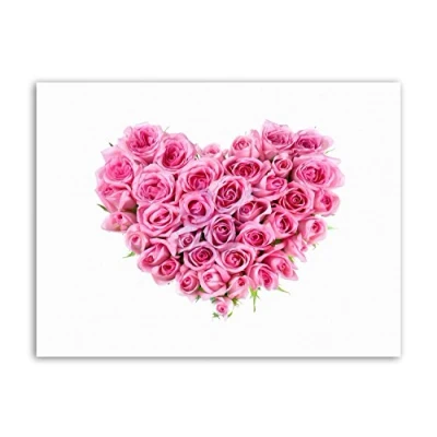 Wee Blue Coo Composition Flower Pink Roses Love Heart Shape Canvas Art Print