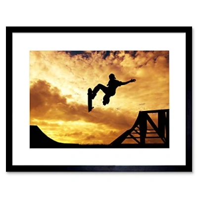 Wee Blue Coo Composition Sport Sunset Skateboard Silhouette Framed Wall Art Print