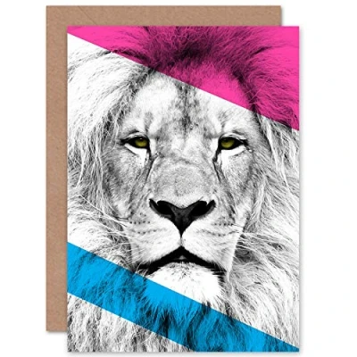 Wee Blue Coo Contemporary Bold CMYK Lion Greeting Card With Envelope Inside Premium Quality