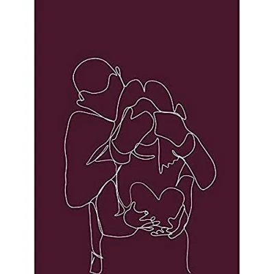 Wee Blue Coo Continuous Line Couple Art Print Canvas Premium Wall Decor Poster