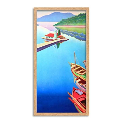 Wee Blue Coo Corfu Greece Pier Boats Long Panel Framed Wall Art Print