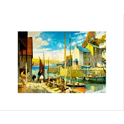 Wee Blue Coo Cornish Village Scene Harbour Gull Boat Fishing UK Wall Art Print