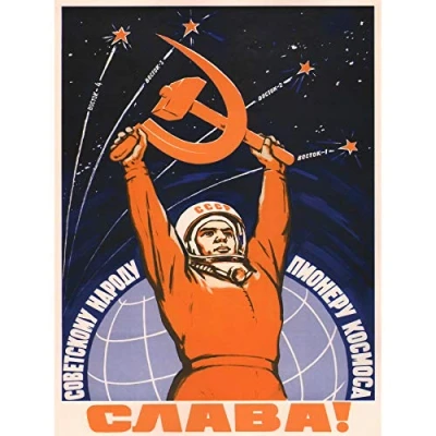 Wee Blue Coo Cosmonaut Gagarin USSR Red Communism Large Canvas Print