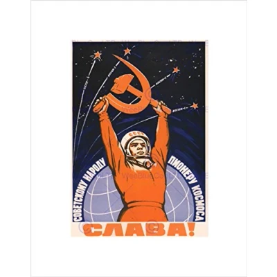 Wee Blue Coo Cosmonaut Gagarin USSR Red Communism Wall Art Print