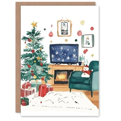 Wee Blue Coo Cosy Decorated Home Tree Gifts Festive Fun Xmas Art Blank For All Christmas Card