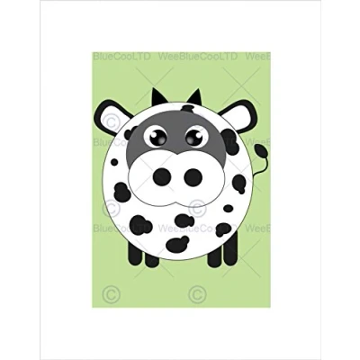 Wee Blue Coo Cow Illustration Cartoon Kids Animal Picture Wall Art Print