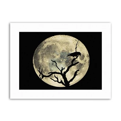 Wee Blue Coo Crow Silhouette Moon Black Grey Picture Canvas Art Print