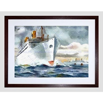 Wee Blue Coo Cruise Ship Ocean Liner Boat Watercolour Picture Framed Wall Art Print