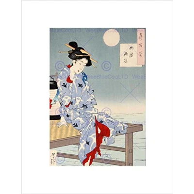 Wee Blue Coo Cultural Abstract Japan Geisha Chikanobu Moon Wall Art Print