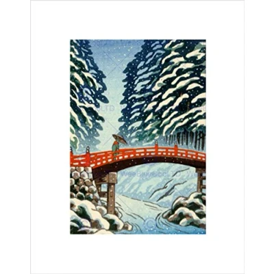 Wee Blue Coo Cultural Japan Abstract Winter Bridge River Snow Koitsu Wall Art Print