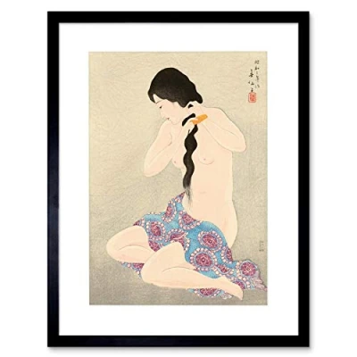 Wee Blue Coo Cultural Japan Geisha Comb Natori Shunsen Framed Wall Art Print