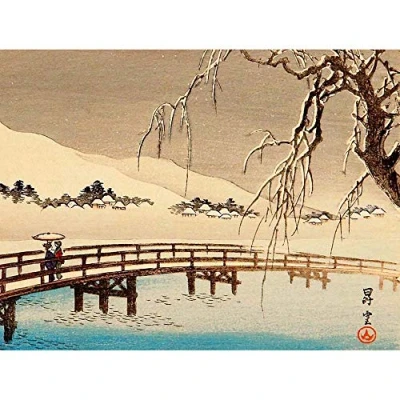 Wee Blue Coo Cultural Landscape Abstract Japan Winter Snow Shoun Art Print Poster Wall Decor 12X16 Inch