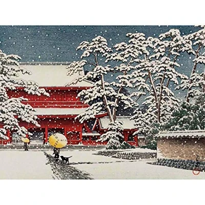 Wee Blue Coo Cultural Landscape Japan Temple Kawase Hasui Snow Winter Art Print Poster Wall Decor 12X16 Inch