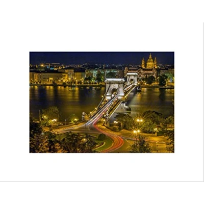 Wee Blue Coo Cultural Landscape Night Light Bridge Budapest Wall Art Print