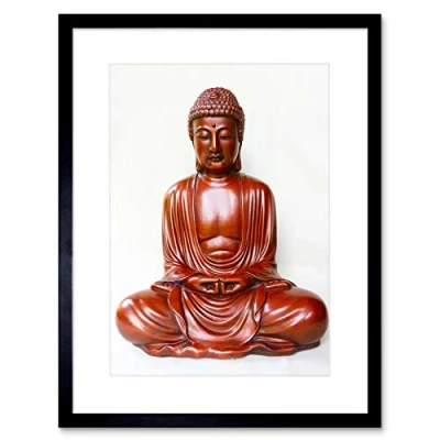 Wee Blue Coo Cultural Religion Icon Buddha Statue Buddhism Karma Framed Wall Art Print