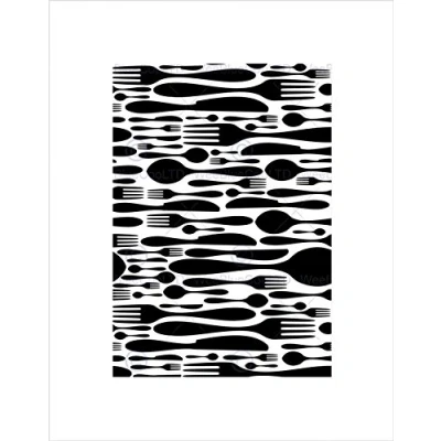 Wee Blue Coo Cutlery Pattern Black White Food Kitchen Illustration Wall Art Print