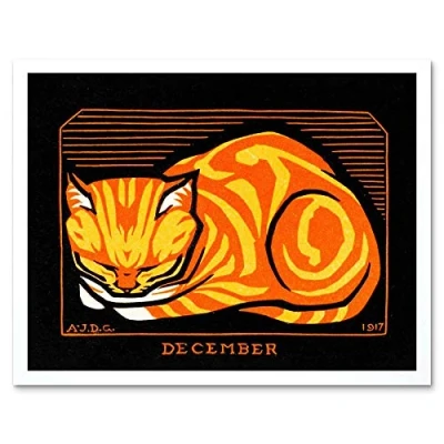 Wee Blue Coo December Cat Julie De Graag Art Print Framed Poster Wall Decor 12X16 Inch