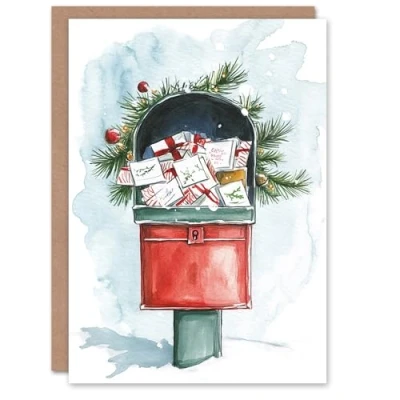 Wee Blue Coo Decorated Letterbox Full Of Gifts Festive Fun Xmas Art Blank For All Christmas Card