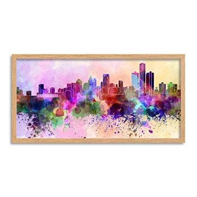 Wee Blue Coo Detroit Skyline Paint Splash Cityscape Long Panel Framed Wall Art Print