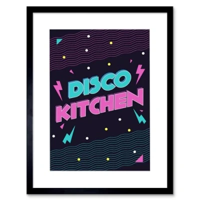 Wee Blue Coo Disco Kitchen 80s Art Print Framed Poster Wall Decor 12x16 inch