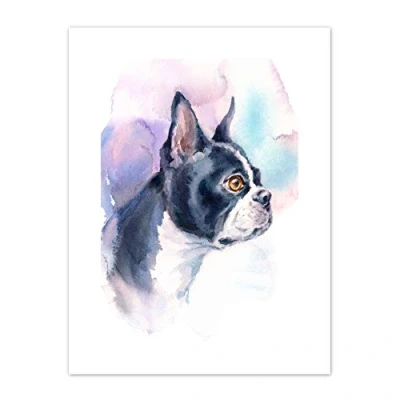 Wee Blue Coo Dog Boston Terrier Watercolour Art Print Canvas Premium Wall Decor Poster