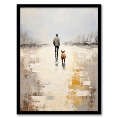 Wee Blue Coo Dog Walkers Dream Simple Calm Neutral Artwork Framed Wall Art Print A4