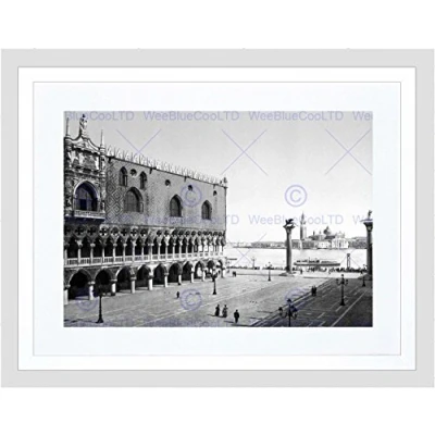 Wee Blue Coo Doge's Palace And Piazzetta Venice Italy 1890s Old BW Framed Wall Art Print