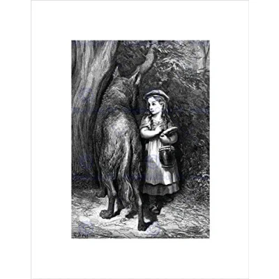 Wee Blue Coo Dore Red Riding Hood Meets Old Father Wolf Wall Art Print