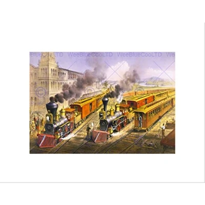 Wee Blue Coo Drawing Travel Rail Train Locomotive Steam Wall Art Print