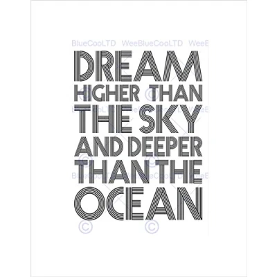 Wee Blue Coo Dream Higher Deeper Ocean Stripey B&W Quote Typography Wall Art Print