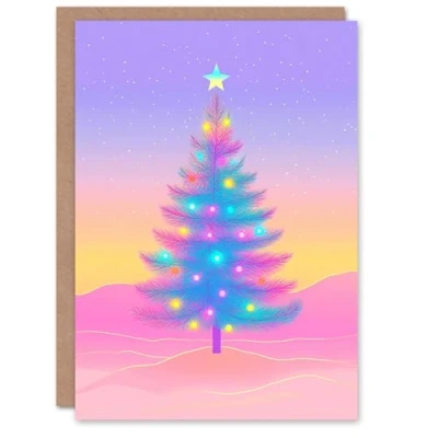 Wee Blue Coo Dreamy Night Sky Colourful Decorated Tree Fun Xmas For Child Kids Christmas Card