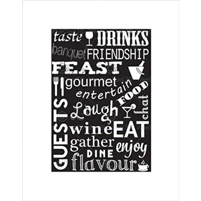 Wee Blue Coo Drink Food Wine Kitchen Words Black Quote Typography Wall Art Print