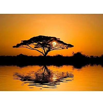 Wee Blue Coo Dt Acacia Tree At Sunrise Art Large Print Poster Wall Decor 18x24 inch
