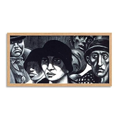 Wee Blue Coo Dwight In The Crowd People Painting Detail Long Panel Framed Wall Art Print