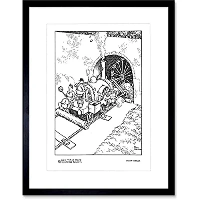 Wee Blue Coo Early Type Engine For Cleaning Tunnels Heath Robinson Wall Art Print