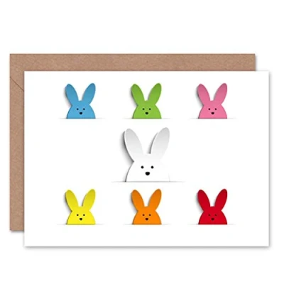 Wee Blue Coo EASTER BUNNIES MULTI COLOUR BLANK GREETINGS CARD ART