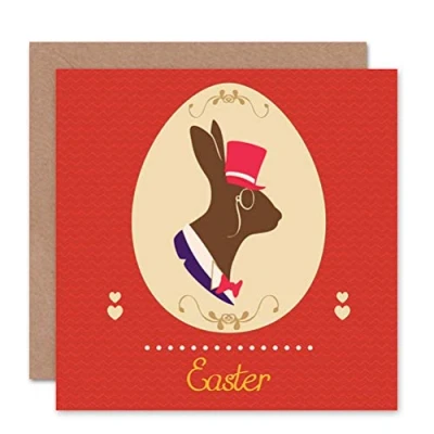 Wee Blue Coo EASTER GENTLEMAN BUNNY EGG BLANK GREETINGS CARD ART