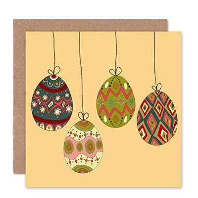 Wee Blue Coo EASTER HANGING PAINTED EGSS BLANK GREETINGS CARD ART