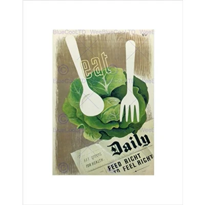 Wee Blue Coo EAT GREENS FOR HEALTH GOVERNMENT UK VINTAGE RETRO ADVERT FRAMED PRINT B12X1163